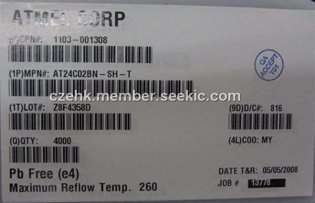 The AT24C02BN-SH-T is a two-wire serial EEPROM. It provides 2048 bits of serial electrically erasable and programmable aread-only memory (EEPROM)organized as 256 words of 8bits each. The device is optimized for use in many industrial and commercial applications where low-power and low-volt age operation are essential. TheAT24C02B is available in space-s aving,8-lead PDIP, 8-lead JEDEC SOIC, 8-lead Mini-MAP (MLP 2×3) , 5-lead SOT23, 8-lead TSSOP, and 8-ball dBGA2 packages and is accessed via a Two-wire serial interf ace.In a ddition, the AT24C02B is available in 1. 8 V (1.8V to 5.5V) version.
